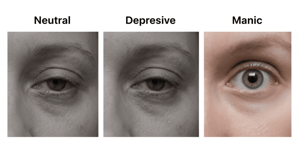 People naturally look to the eyes because they reflect emotion, sleep, and stress. When moods swing dramatically, it makes sense to wonder whether eyes could provide a visual clue, especially for loved ones trying to understand what’s happening.